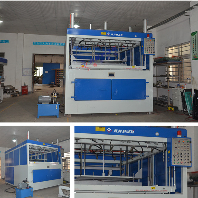 吸塑機(又叫熱塑成型機)是將加熱塑化的PVC、PE、PP、PET、HIPS等熱塑性塑料卷材吸制成各種形狀的檔次高包裝裝璜盒、框等產品的機器。利用真空泵產生的真空吸力,將加熱軟化后的PVC、PET等熱可塑性塑料片材經過模具吸塑成各種形狀的真空罩、吸塑托盤、泡殼等。