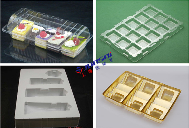 主要適用于PS、HIPS、PVC、PET、PP等塑料片材成型,生產(chǎn)各種盒、碟、托盤、碗、蓋等包裝制品。如:食品盒、蛋糕盒、快餐盒、糕點(diǎn)托盤、超市托盤、醫(yī)藥針劑托盤、口服液托盤.等